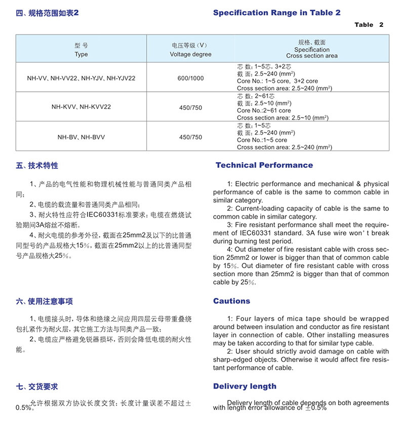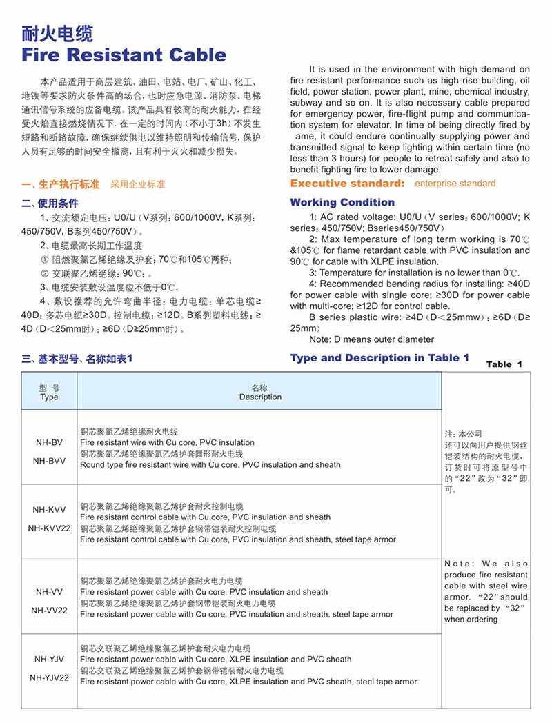耐高溫(阻燃)電力電纜